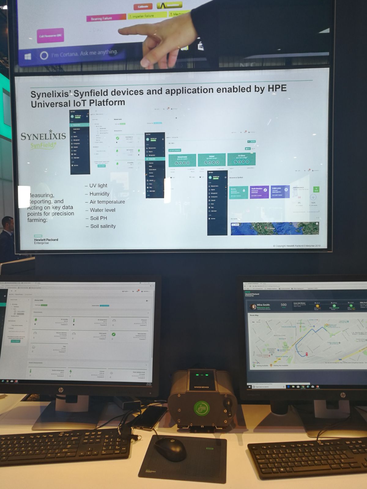 The HPE demo on Smart Agriculture, built in collaboration with HPE ecosystem partner Synelixis Solutions S.A., shows how customers are able to manage and analyze IoT devices and the data they generate, even in remote locations and enable farmers to optimize crop production, as well as how that data can be shared/resold to empower other use cases in adjacent industries by utilizing the oneM2M industry standard.