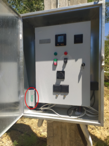 The installation is based on a SynField X3 node, a number of digital relays and an industrial 12 bar pressure sensor. The innovation in this installation is that two relays have been used to start the drilling submersible pump, but each one drives a different timer; so two independent timers record when the drilling has started with each relay, enabling precise accounting of the irrigation time and water/electricity consumed. The node is interconnected via the cellular GPRS/NB-IoT network and power supplied by an external transformer.