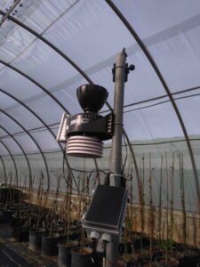 The installation consists of a Davis Vantage Pro 2 meteorological sensor suite that records the following environmental conditions: ambient temperature and relative humidity in real time. and of an EC5 soil moisture sensor (Meter group) that measures the soil moisture in the crop area. These sensors are connected to a SynField central node (SF-HN-Χ3) which transmits the measurements to the SynField cloud platform.