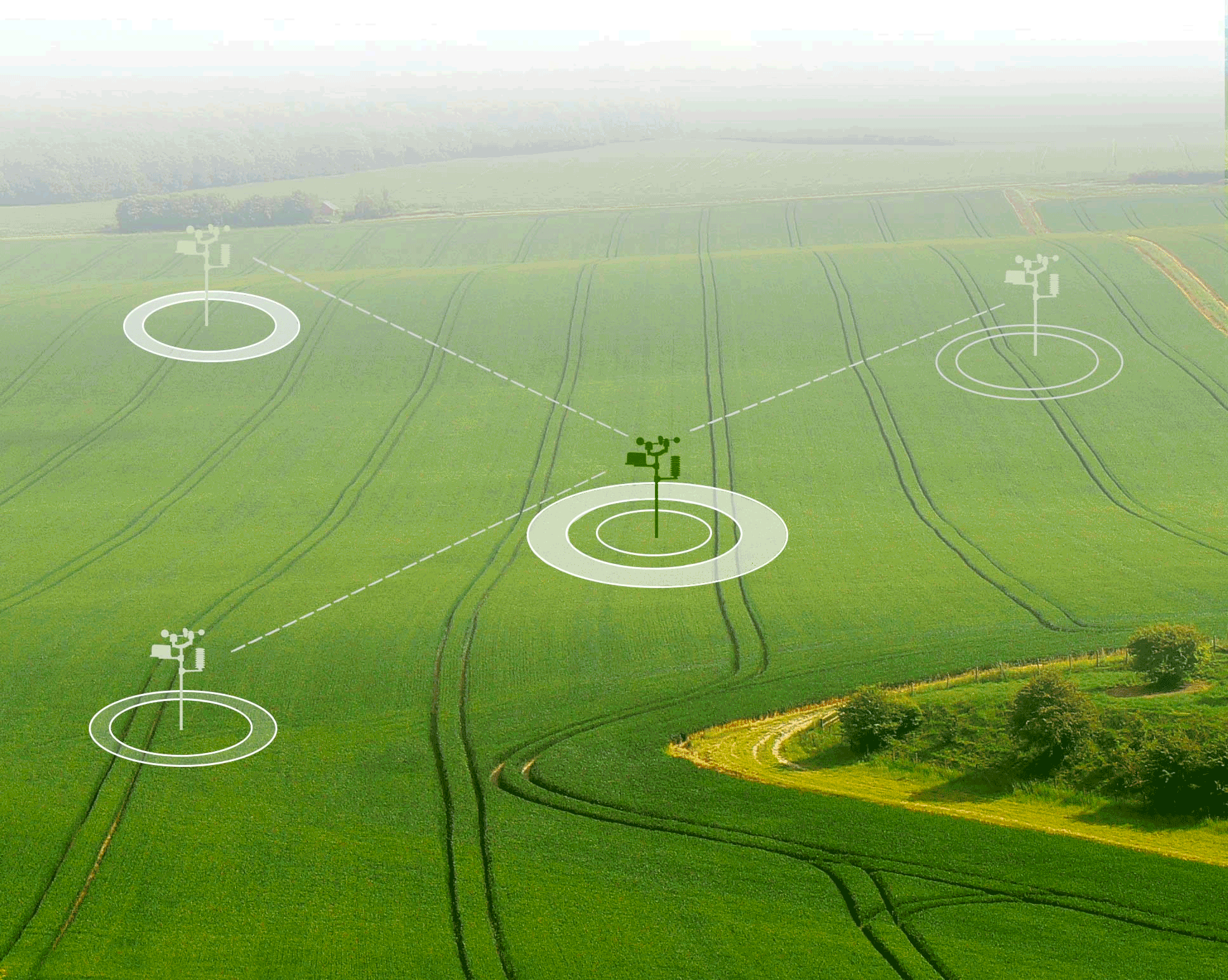 Monitoring of soil, atmospheric and plant conditions, in order to predict for crop diseases probability.