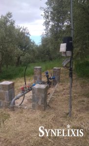 The upgrated installation features the new Synelixis SF-PS-V2.0 Water Presure Sensors to measure the water presure at the irrigation network.